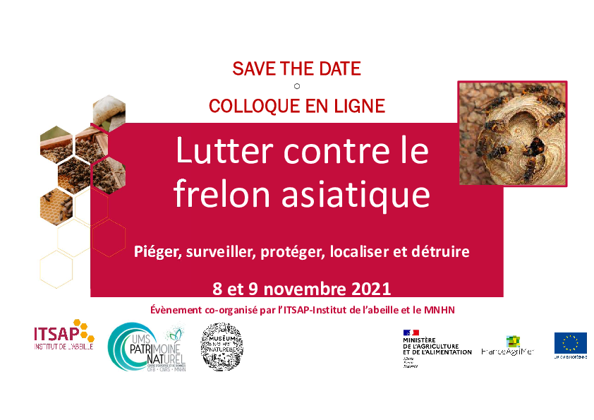 Colloque ITSAP et MNHN BeesForLife présente ses projets : Lutter contre le frelon asiatique Piéger, surveiller, protéger, localiser et détruire 8 et 9 novembre 2021